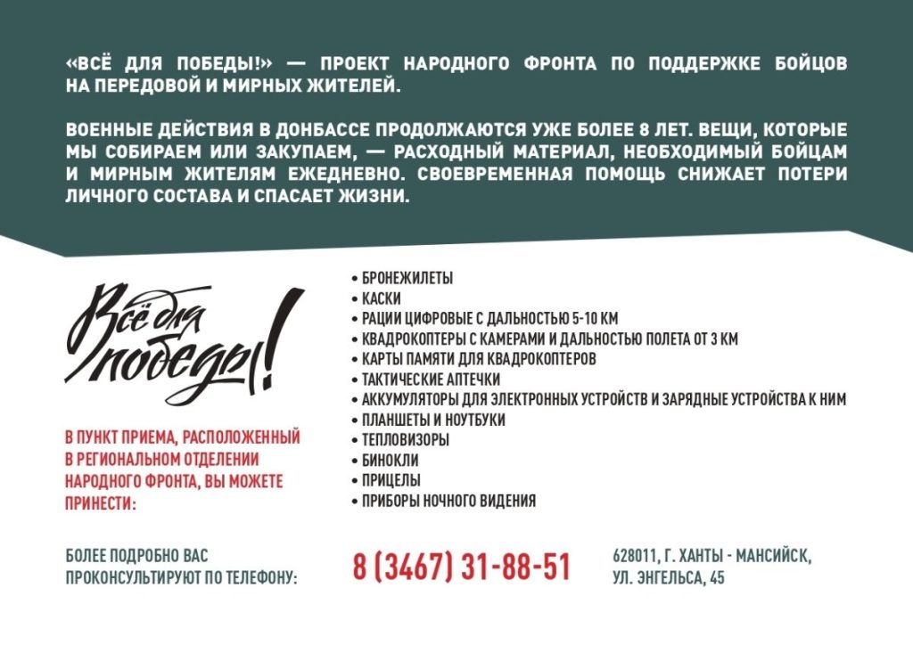 Разное Общероссийское общественное движение «Народный фронт «За Россию» продолжает реализацию масштабного проекта «Все для Победы!» - Администратор|Опубликовано 21.10.2025